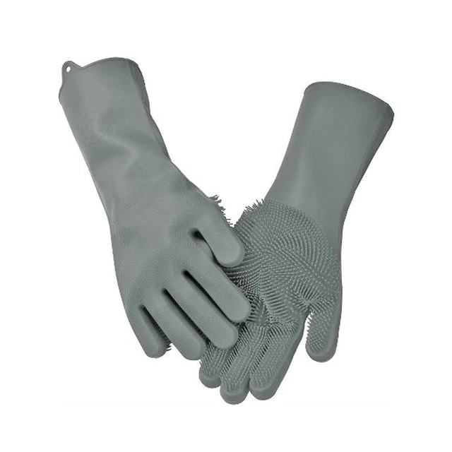 Guantes de silicona con cerdas x 2 unidades.Juego de dos guantes para lavar todo lo que quieras:Cocina.Baño.Paredes.Pisos.Mascotas.Autos.Medias: 30cm x13.5cm.